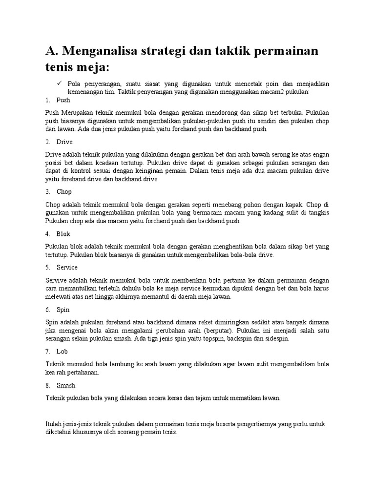 Check spelling or type a new query. Dalam permainan tenis meja gerakan dasar memukul bola dengan gerakan menghentikan bola dengan sikap bet tertutup dinamakan. We did not find results for: Maybe you would like to learn more about one of these?